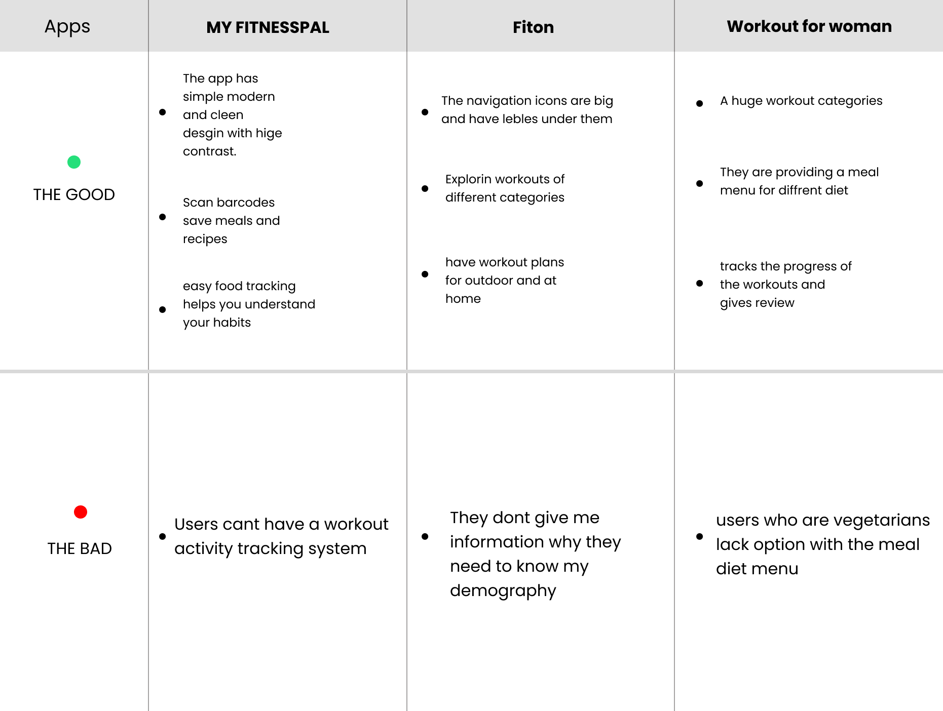 I created a competitive analysis to understand the marketplace and find opportunities for the app to differentiate and present users with a better value proposition.